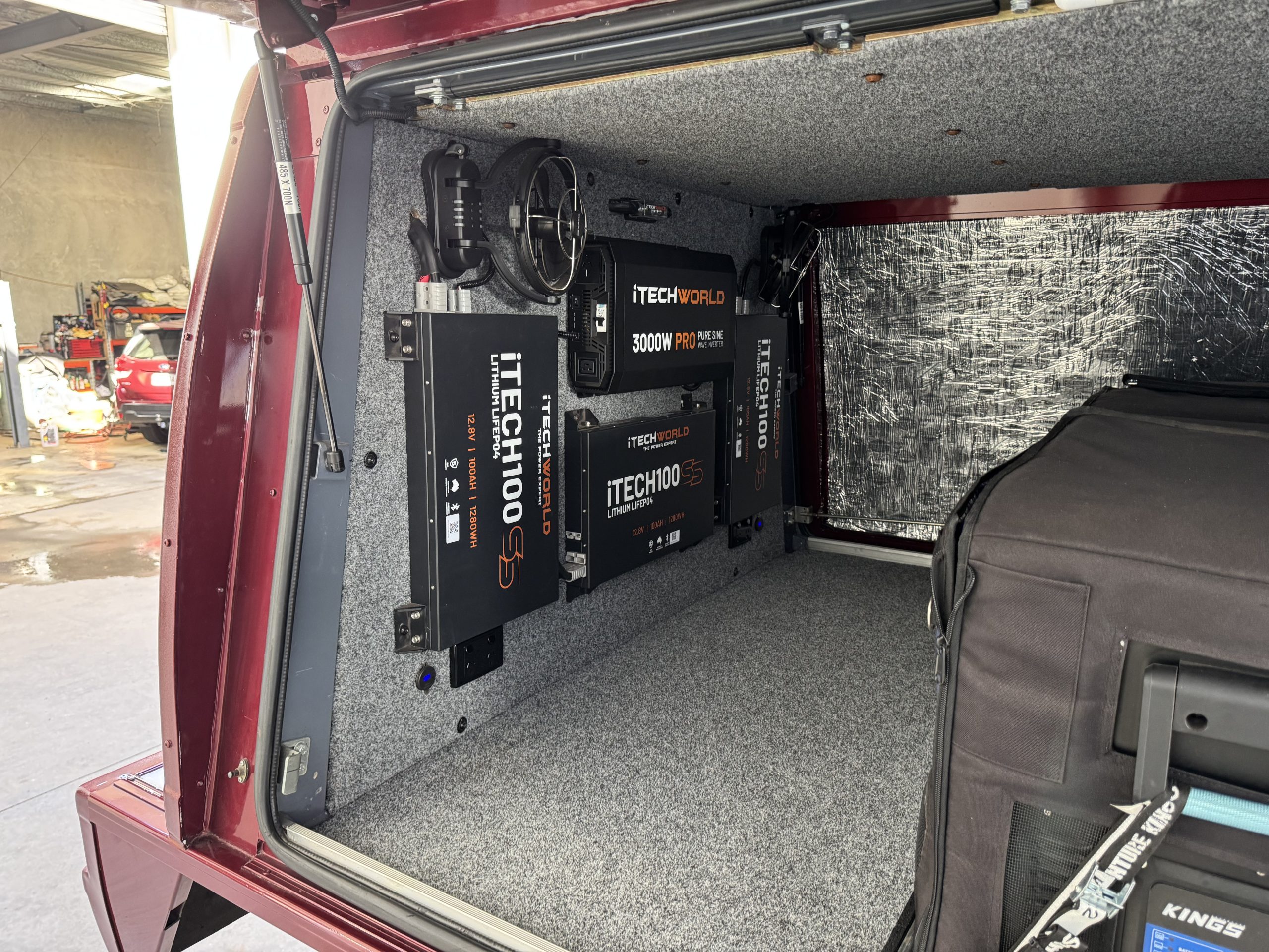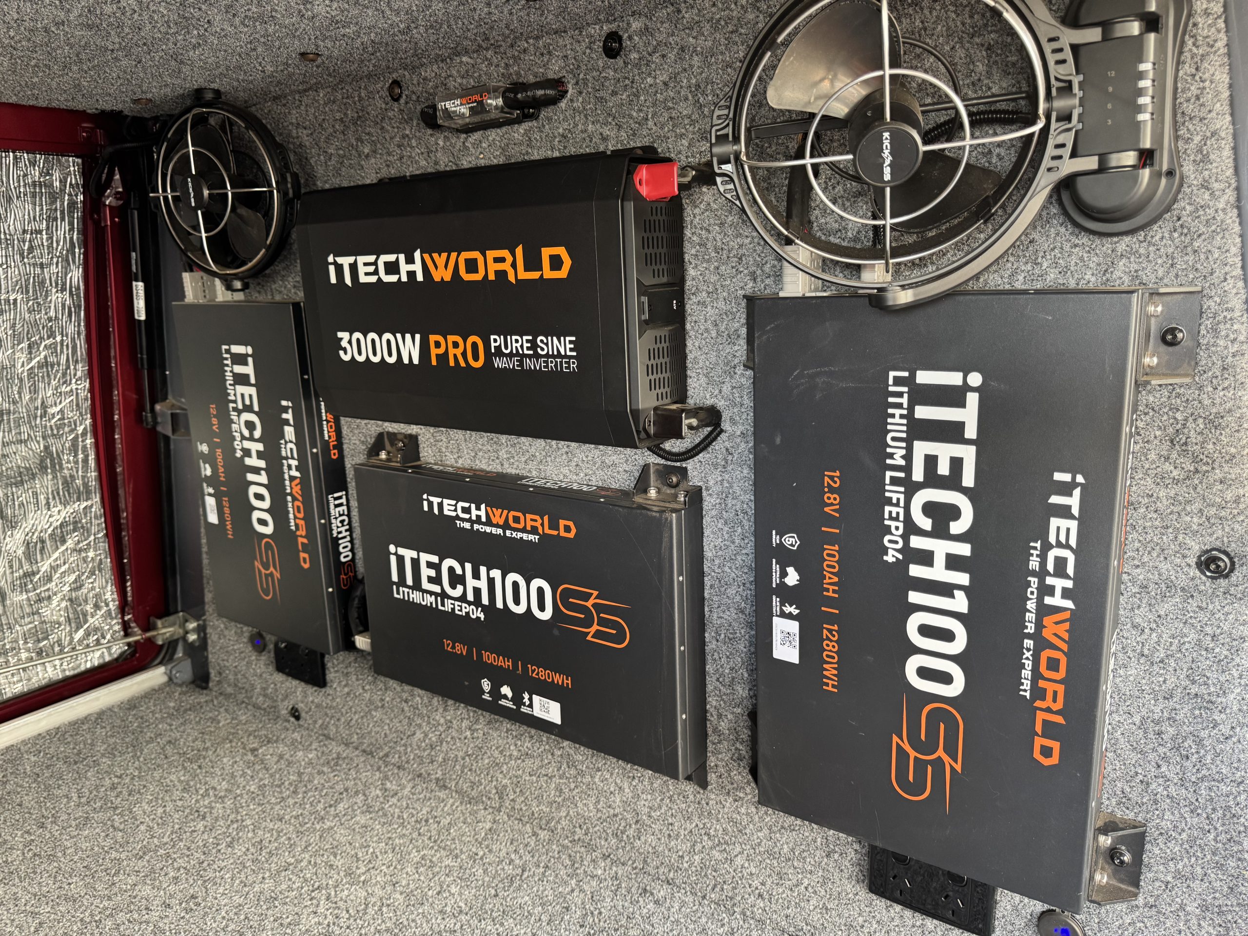 – 3 x 100ah Slim Deep Cycle Lithium Batterys. 300 ah in total